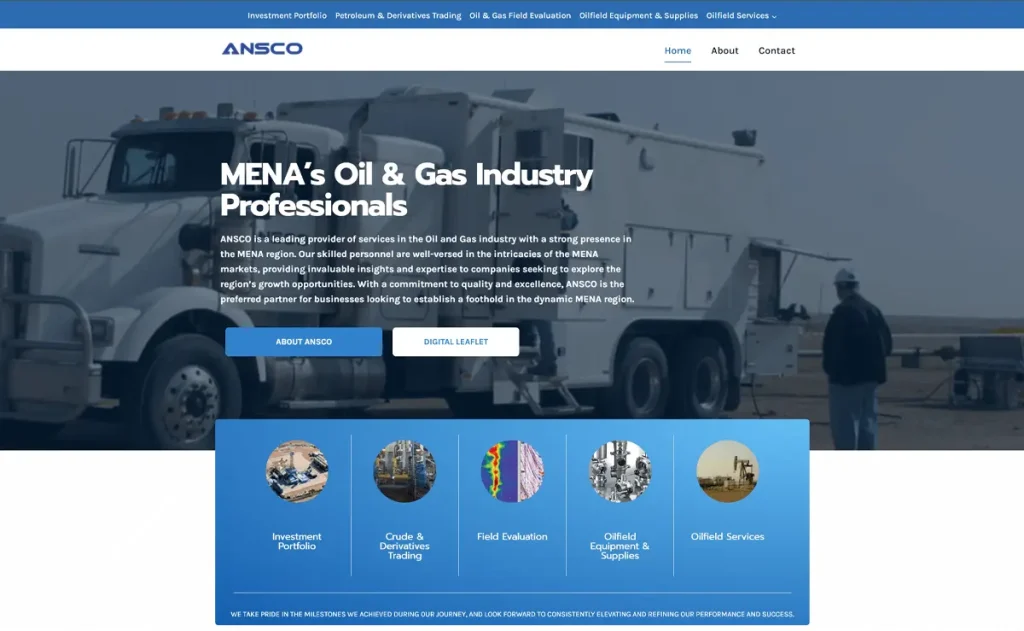 ANSCO är en ledande leverantör av tjänster inom olje och gasindustrin med en stark närvaro i MENA-regionen. Deras befintliga webbplats var föråldrad och levde inte upp till dagens designstandarder, vilket påverkade deras professionella image online.