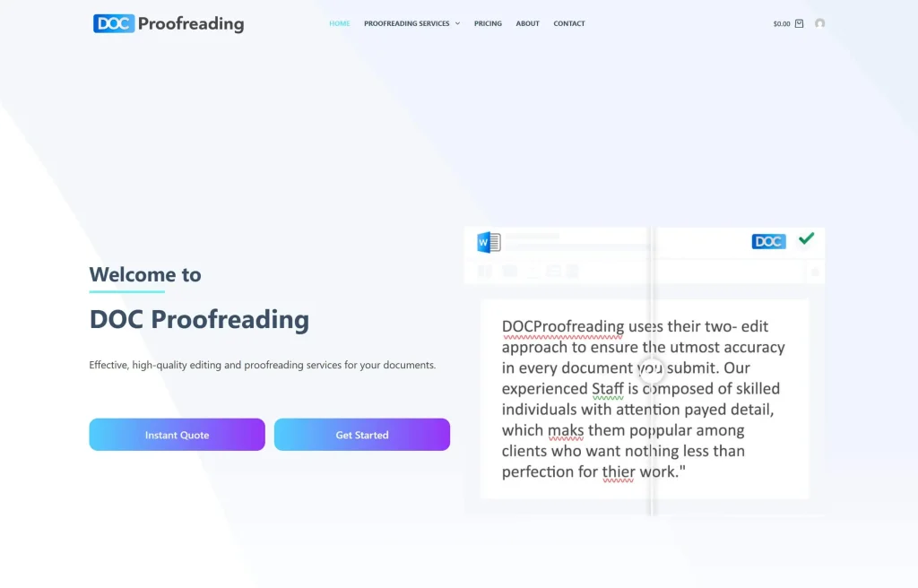 DOC Proofreading är ett företag som erbjuder professionella korrekturläsningstjänster för olika typer av dokument. För att kunna attrahera kunder och presentera sina tjänster på ett effektivt sätt behövde de en modern och användarvänlig webbplats som fungerade som deras digitala skyltfönster.