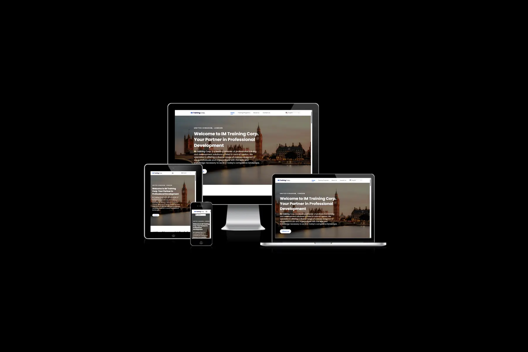 IM Training Corp., baserade i London, behövde en ny webbplats specifikt utformad för att hantera kursförfrågningar och presentera deras utbildningsutbud på ett tydligt och attraktivt sätt. Målet var att skapa en plattform som effektivt kunde konvertera besökare till intresserade kursdeltagare.