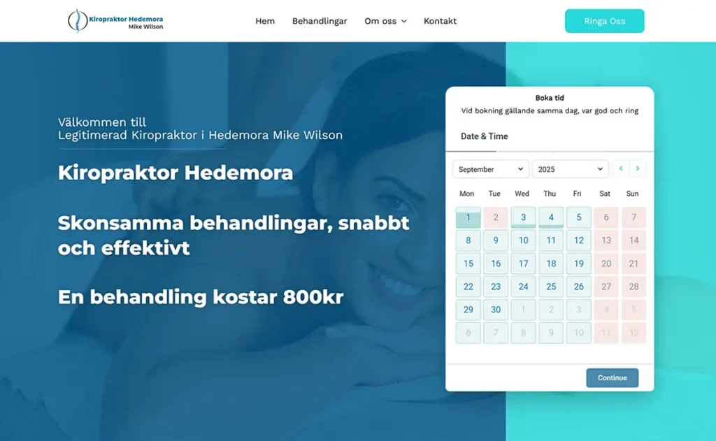 Kiropraktor Hedemora, en klinik i en mindre stad, behövde etablera en stark digital närvaro för att öka sin synlighet och attrahera fler patienter. Målet var att dominera lokala sökresultat och öka antalet bokningar i en stad med begränsad befolkning.